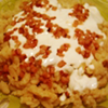 Tvaroh smícháme s moukou, vejcem, solí, sekaného kopru a vypracujeme těsto, které necháme 10 min odstát. Potom přivedeme k varu vodu se solí a olejem a do vroucí vody dáváme halušky. Nejlépe se dávkují nožem z prkýnka, přímo do vroucí vody./ Uvařené halušky necháme odkapat, polijeme vyškvařenou slaninou a smetanou, posypeme zbytkem kopru. Když je tvaroh moc tuhý a těsto se nedá dobře zpracovat, přidáme podle potřeby mléko.