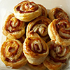 Postup: Rozválíme si listové těsto, namažeme kečupem, posypeme nadrobno nakrájenou cibulí (pórkem) poklademe plátky šunky, plátky tvrdého sýra a zasypeme kořením. Výborné je také nahradit kečup cikánskou omáčkou, je to potom pikantnější. Obložené listové těsto zabalíme do rolády a nakrájíme na kolečka cca 1 cm široká. Mini pizza šneky poklademe na plech vyložený pečícím papírem a každé kolečko pomažeme rozšlehaným žloutkem a posypeme mletým kmínem. Pizza šneky dáme péct do trouby na nejvyšší teplotu, pečeme dozlatova. Mini pizza šneci se hodí jako chuťovka na každou párty.